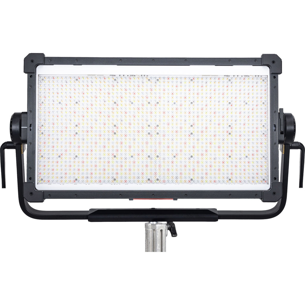 The panel's LEDs are packed into a compact design that doesn't sacrifice power and flexibility. A removable yoke is included to facilitate rigging, while the all-new direct front-mounting accessory ecosystem improves your workflow by making light shaping easier and faster. Aputure highlights a high output-to-weight ratio with a powerful 1000W lamp head that only weighs 41 lb with its yoke, making the NOVA II 2x1 a durable lighting solution with rigging and control options.