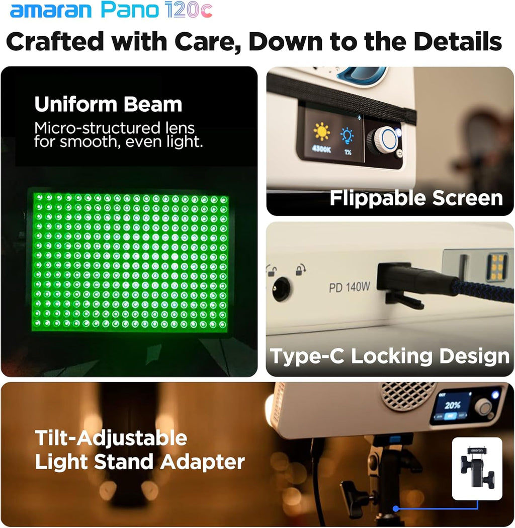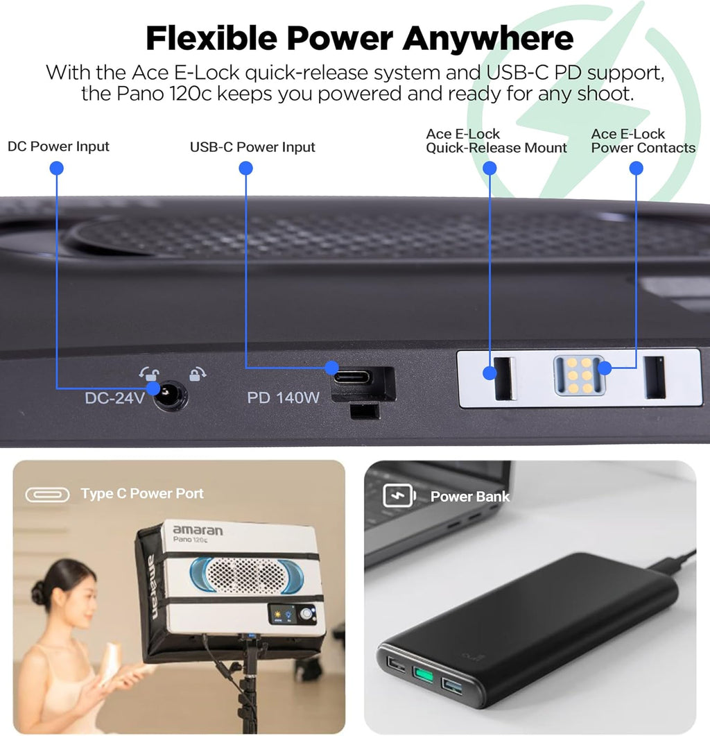 As the first panel lights to support USB-C PD technology, the amaran Pano 60c & 120c can be powered by a range of PD power banks and chargers – bringing flexible, travel-friendly power to both indoor and outdoor creations. Unlike competing panels that require bulky batteries or outlets, the amaran Pano sets a new standard for reliable, portable power. And with a Locking USB-C Cable for secure connections, work uninterrupted without worrying about power interruptions.