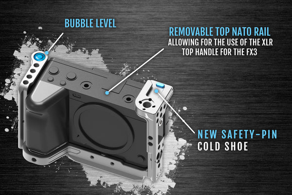 • The NATO rail on top is removable, allowing for the use of Sony's FX3 XLR top handle. *SOLD SEPARATELY*