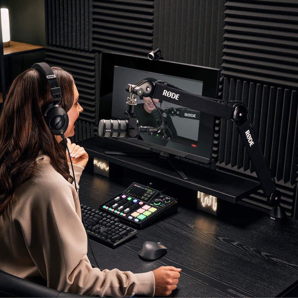 It’s never been easier to record a professional one-person podcast with studio-grade audio. Capture your voice in rich detail with the PodMic, position it perfectly with the PSA1+, monitor your audio while recording and listening back with the studio-grade NTH-100 headphones, and the RØDECaster Duo takes care of the rest – mixing, processing, recording and playing sounds and effects.