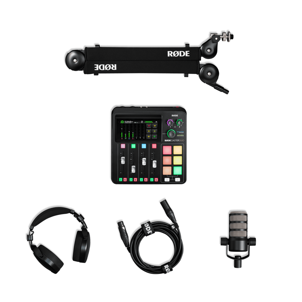 The Solo Podcast Kit offers everything you need to capture incredible audio for your one-person podcast, whether you're experienced and looking to elevate your setup or just starting your podcasting journey. Alongside the world’s most powerful all-in-one production solution, the RØDECaster Duo, the kit includes the broadcast-quality PodMic dynamic microphone, PSA1+ professional studio arm, NTH-100 professional studio headphones.
