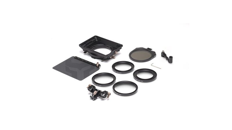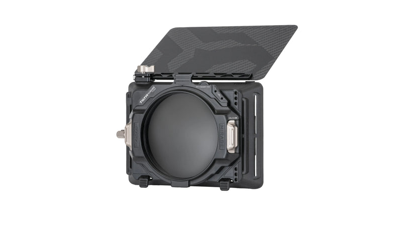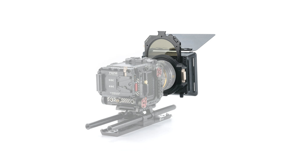 Built rugged for daily use on your camera rig yet lightweight for handheld, gimbal, stabilizer, or drone work, the Tilta Mirage VND Kit with Mirage Matte Box is a modular component system that clips onto 95mm OD lenses. The included variable ND system allows you to precisely adjust the ND effect from 1 to 9 stops when needed. The matte box weighs about the same as a standard 4 x 5.65" glass filter, and it accepts Tilta's 95mm round filters with the included filter adapter. The modular design means you can configure the matte box to match your needs on a shot-by-shot basis.
